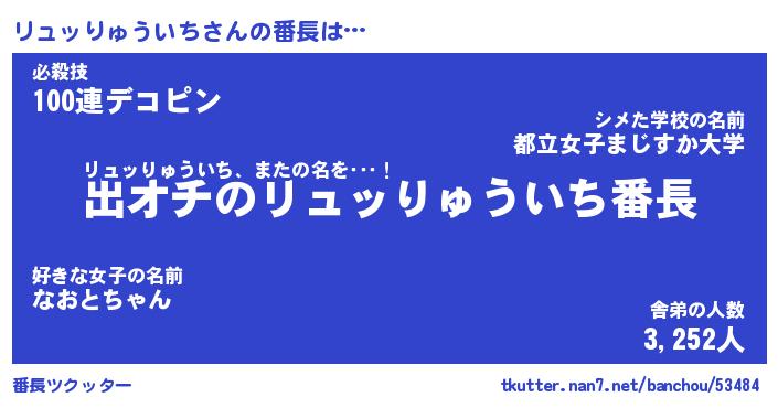| 伝説のあだ名 | 『伝説のスナイパーリュッりゅういち』 |