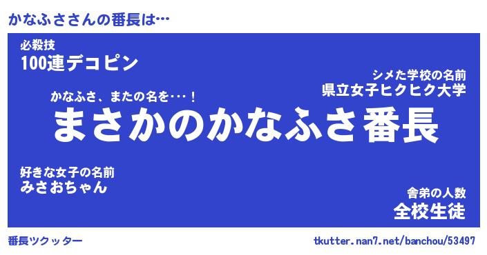| 意味不明あだ名 | 『ペロリンかなふさ』『永久保存かなふさ』 |