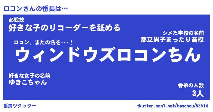| ヒーロー風カッコイイあだ名 | 『スーパーロコン』『ウルトラロコンマン』 |