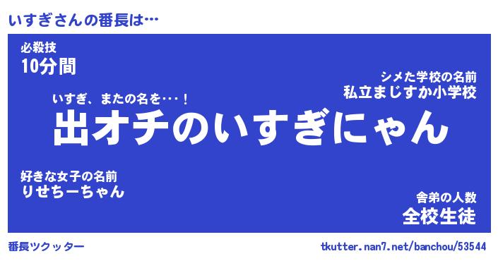 | 男性向けラノベタイトル風あだ名 | 『いすぎの憂鬱』 |