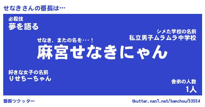 | 意味不明あだ名 | 『ペロリンせなき』『せなきフォーエバー』 |