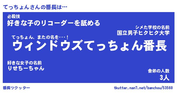 | 男性向けラノベタイトル風あだ名 | 『てっちょんの憂鬱』 |