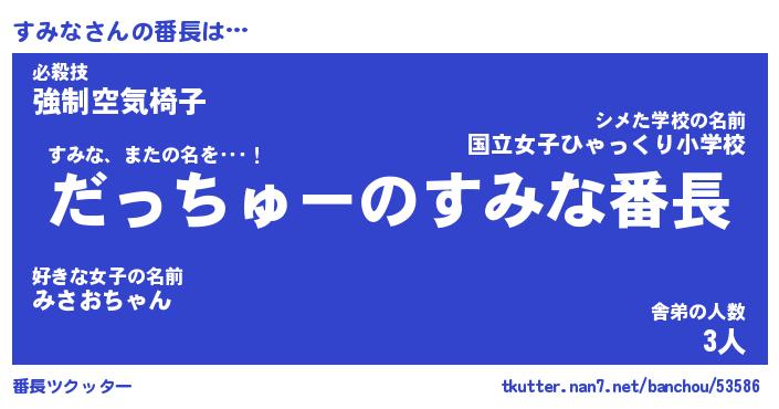 | 2回繰り返すあだ名 | 『すみすみ』『すすみみ』『いらいら』 |