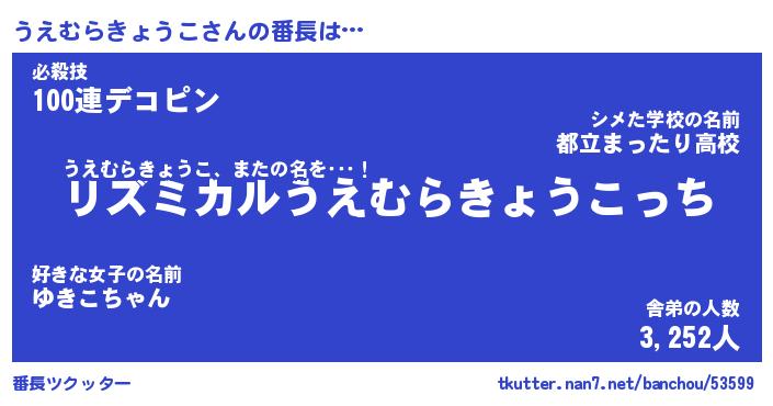 | 伝説のあだ名 | 『伝説のスナイパーうえむらきょうこ』 |