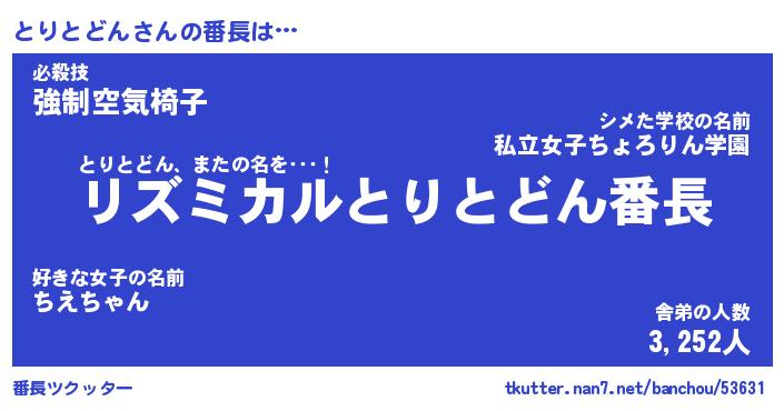 | 肩書あだ名 | 『とりとどん社長』『とりとどん総理大臣』 |