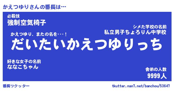 | 伝説のあだ名 | 『不死鳥のスナイパーかえつゆり』 |