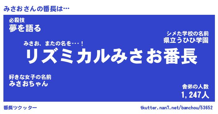 | 肩書あだ名 | 『みさお御曹司』『みさお総理大臣』 |