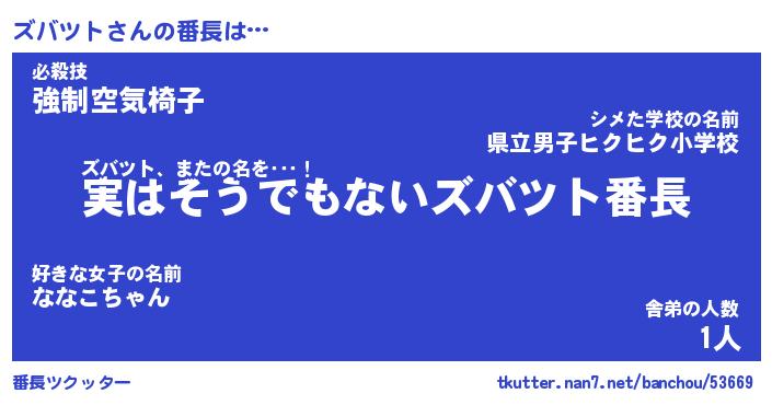 | 意味不明あだ名 | 『ペロリンズバツト』『永久保存ズバツト』 |