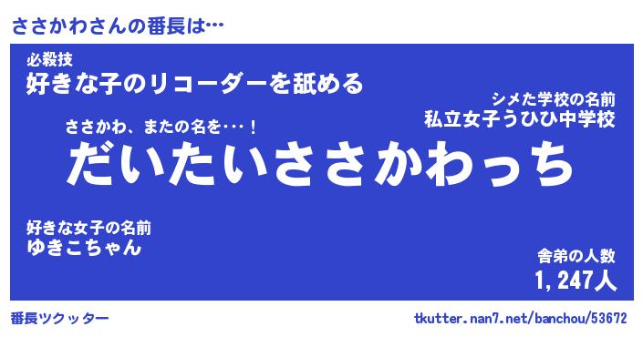 | ファンタジー風あだ名 | 『ササフェル』『エターナルササカワー』 |