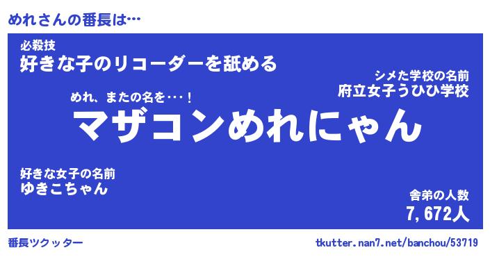 | ヘコむあだ名 | 『めれにゅー』『つくし』『めれお』 |
