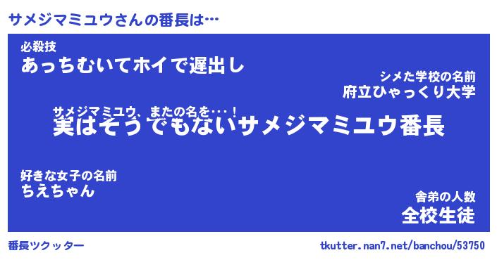 | 欧米人風あだ名 | 『マイケルサメジマミユウ』 |