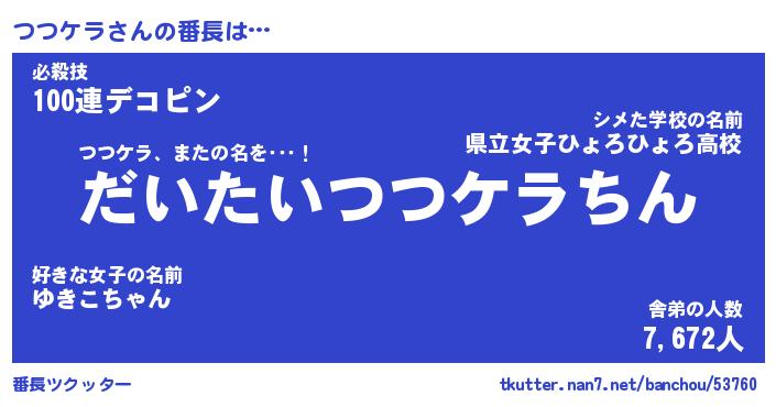 | 意味不明あだ名 | 『ペロリンつつケラ』『永久保存つつケラ』 |