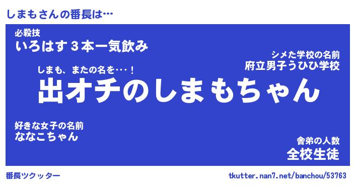 | 意味不明あだ名 | 『ペロリンしまも』『しまもフォーエバー』 |