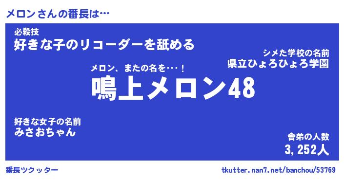 | 意味不明あだ名 | 『ペロリンメロン』『メロンフォーエバー』 |