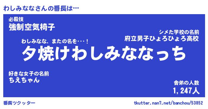 | ポケモン風あだ名 | 『ワシチュウ』『ワシミダネ』 |