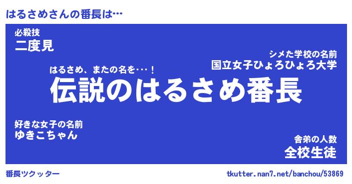 | ファンタジー風あだ名 | 『ハルフェル』『エターナルハルサメー』 |