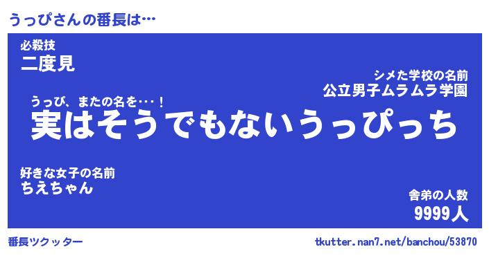 | 伝説のあだ名 | 『封印されしスナイパーうっぴ』 |