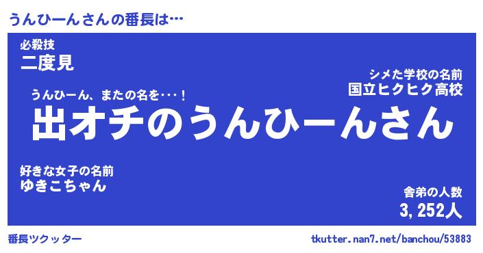 | 伝説のあだ名 | 『伝説のスナイパーうんひーん』 |