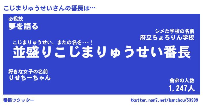 | 男性向けラノベタイトル風あだ名 | 『こじまりゅうせいの憂鬱』 |