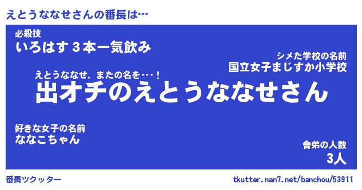 | 意味不明あだ名 | 『ペロリンえとうななせ』 |