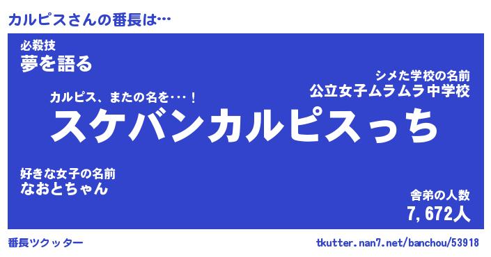 | 意味不明あだ名 | 『ペロリンカルピス』『永久保存カルピス』 |