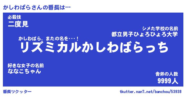 | 意味不明あだ名 | 『ペロリンかしわばら』 |