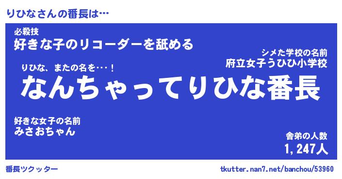 | 肩書あだ名 | 『りひな店長』『りひな総理大臣』 |