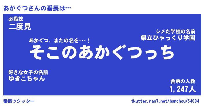 | 意味不明あだ名 | 『ペロリンあかぐつ』『永久保存あかぐつ』 |
