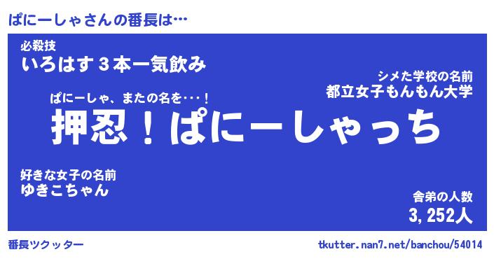 | 肩書あだ名 | 『ぱにーしゃ御曹司』『ぱにーしゃ校長』 |