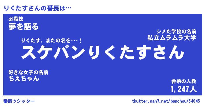 | 意味不明あだ名 | 『ペロリンりくたす』『永久保存りくたす』 |
