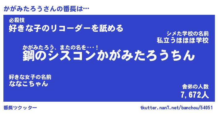 | ピコ太郎風あだ名 | 『カコ四郎』『ピカ六郎』『カガ一郎』 |
