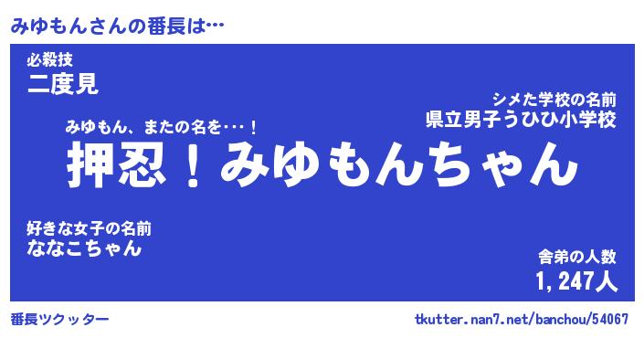 | ファンタジー風あだ名 | 『ミユフェル』『エターナルミユモンー』 |