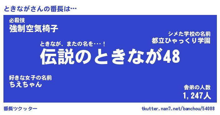 | 肩書あだ名 | 『ときなが店長』『ときなが総理大臣』 |