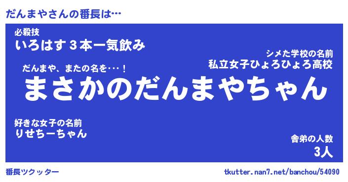 | 意味不明あだ名 | 『ペロリンだんまや』『永久保存だんまや』 |