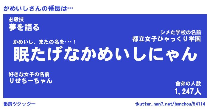 | 意味不明あだ名 | 『ペロリンかめいし』『永久保存かめいし』 |