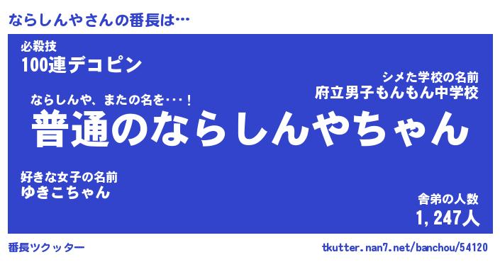 | ヒーロー風カッコイイあだ名 | 『スーパーナラシンヤ』『黄金騎士ナラ』 |