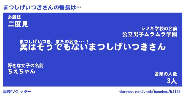 | ヘコむあだ名 | 『まつにー』『酢こんぶ』『まつ太郎』 |