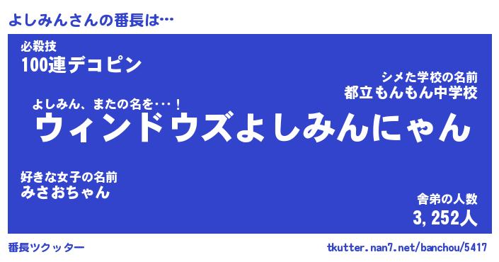 | 意味不明あだ名 | 『ペロリンよしみん』『永久保存よしみん』 |