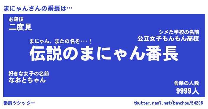 | 意味不明あだ名 | 『ペロリンまにゃん』『永久保存まにゃん』 |