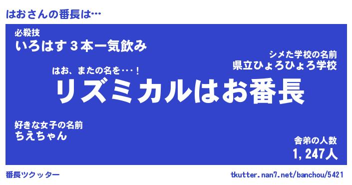 | ヘコむあだ名 | 『はおもー』『なまこ酢』『はお太郎』 |