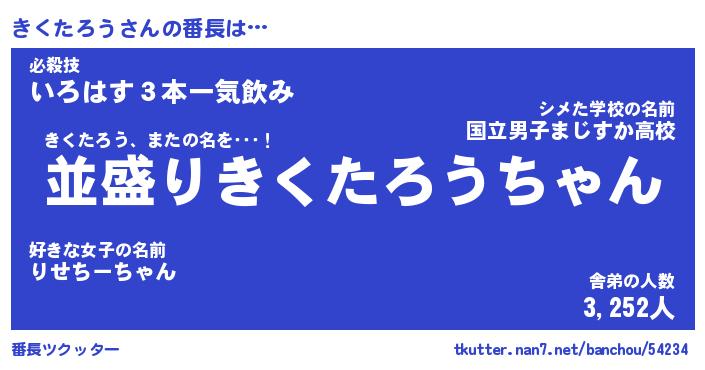 | ピコ太郎風あだ名 | 『キコ三郎』『ピキ八郎』『キク次郎』 |