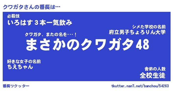 | ヘコむあだ名 | 『クワもー』『なまこ酢』『クワ太郎』 |