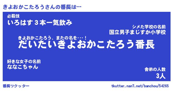 | 2回繰り返すあだ名 | 『きよきよ』『ききよよ』『ぐえぐえ』 |