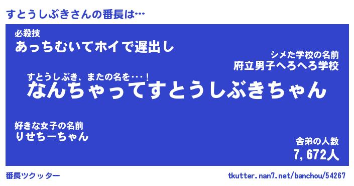 | 伝説のあだ名 | 『伝説のスナイパーすとうしぶき』 |