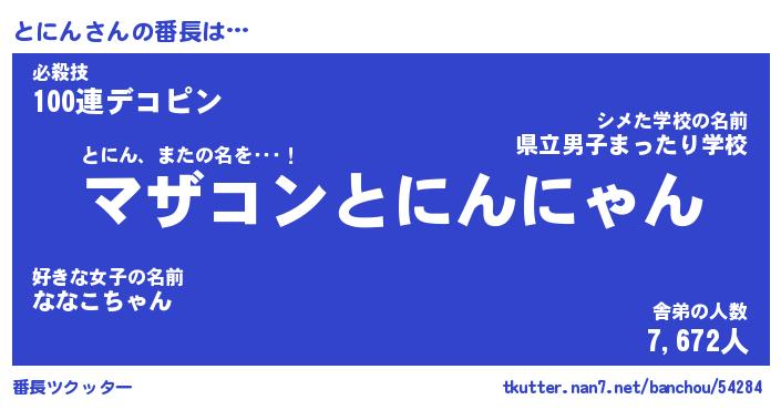 | 意味不明あだ名 | 『ペロリンとにん』『とにんフォーエバー』 |