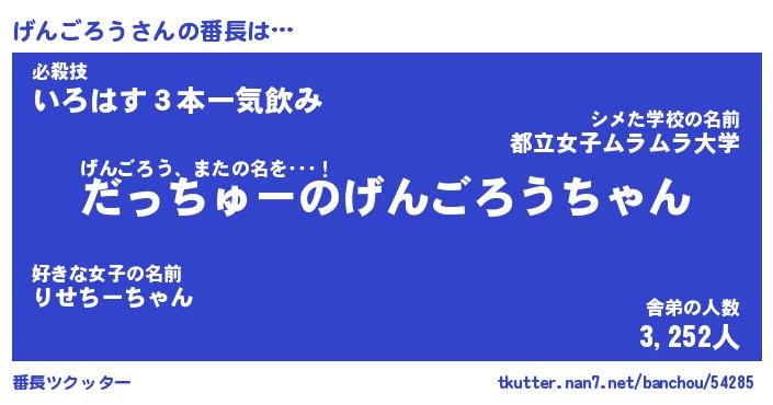 | ポケモン風あだ名 | 『ゲンチュウ』『ゲンゴダネ』 |