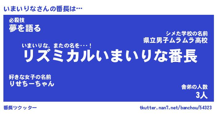 | 肩書あだ名 | 『いまいりな店長』『いまいりな国家主席』 |