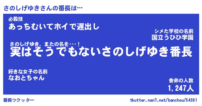 | 意味不明あだ名 | 『ペロリンさのしげゆき』 |