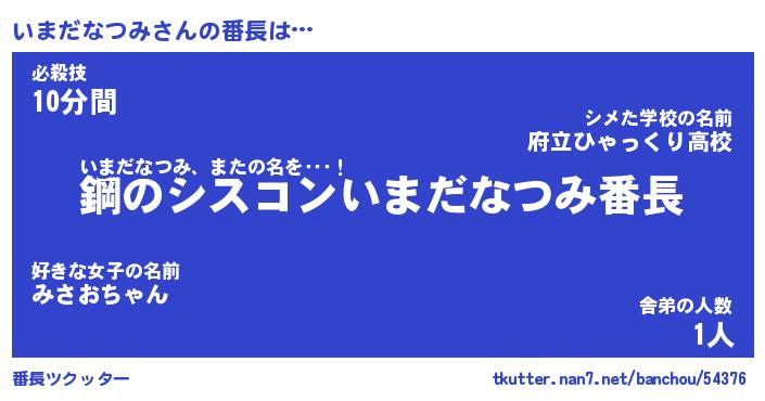 | ポケモン風あだ名 | 『イマチュウ』『イマダダネ』 |