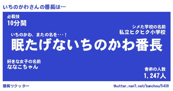 | ヒーロー風カッコイイあだ名 | 『スーパーイチノカワ』『銀牙騎士イチ』 |